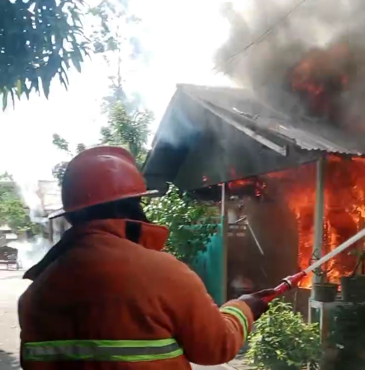 Sementara itu, rumah milik Pak Karyo juga ikut terdampak. Meskipun tidak terbakar sepenuhnya, bagian dapur rumahnya mengalami kerusakan cukup parah, dan dua unit sepeda motor miliknya turut hangus terbakar.