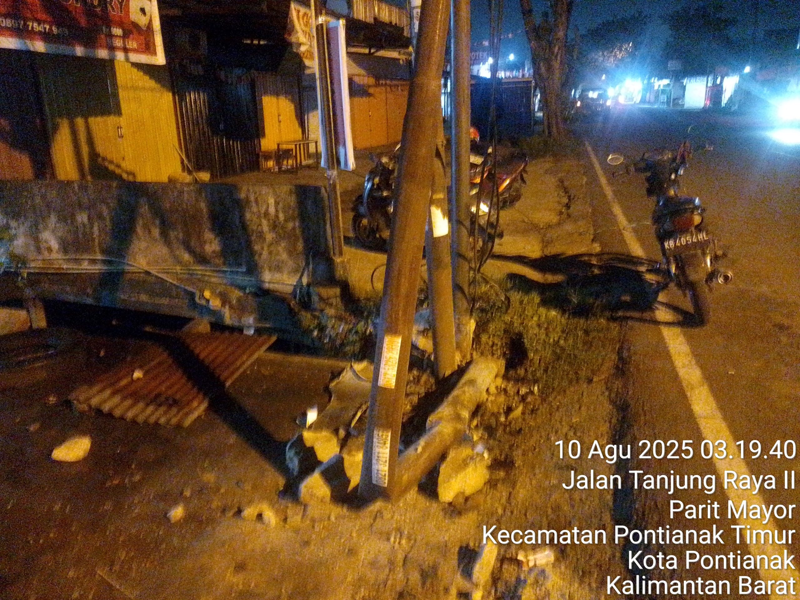 Pontianak –jejakkalbar.web.id, Kecelakaan lalu lintas tunggal terjadi di Jalan Tanjung Raya 2, Pontianak, tidak jauh dari gerbang perbatasan Kota Pontianak dan Kabupaten Kubu Raya, Minggu (10/8/2025) dini hari.